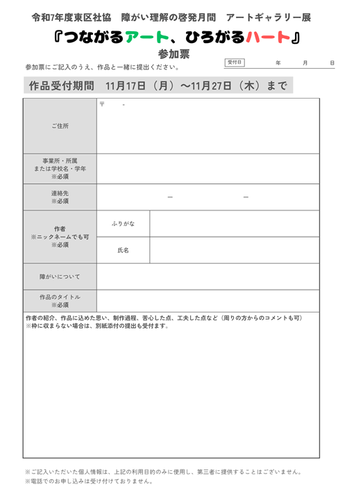 『東区 障がい理解の啓発月間』展示作品募集!!