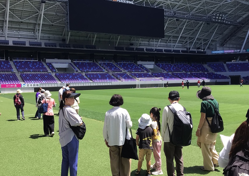 令和7年度は令和6年3月に開業したサッカースタジアム『エディオンピースウイング広島』のスタジアム見学ツアーへ親子、スタッフあわせて25名で行きました。
