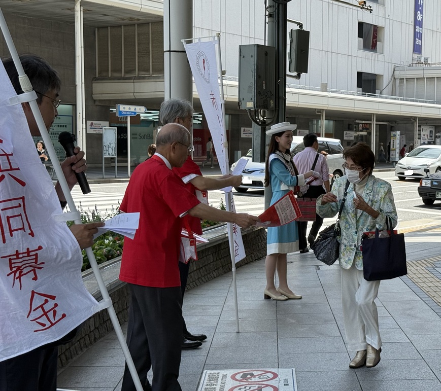 今年も10月1日の街頭募金に職員2名で参加させていただきました。市域の関係団体に加え、広島観光親善大使も駆けつけてくださり総勢40名で募金の協力を呼びかけました。