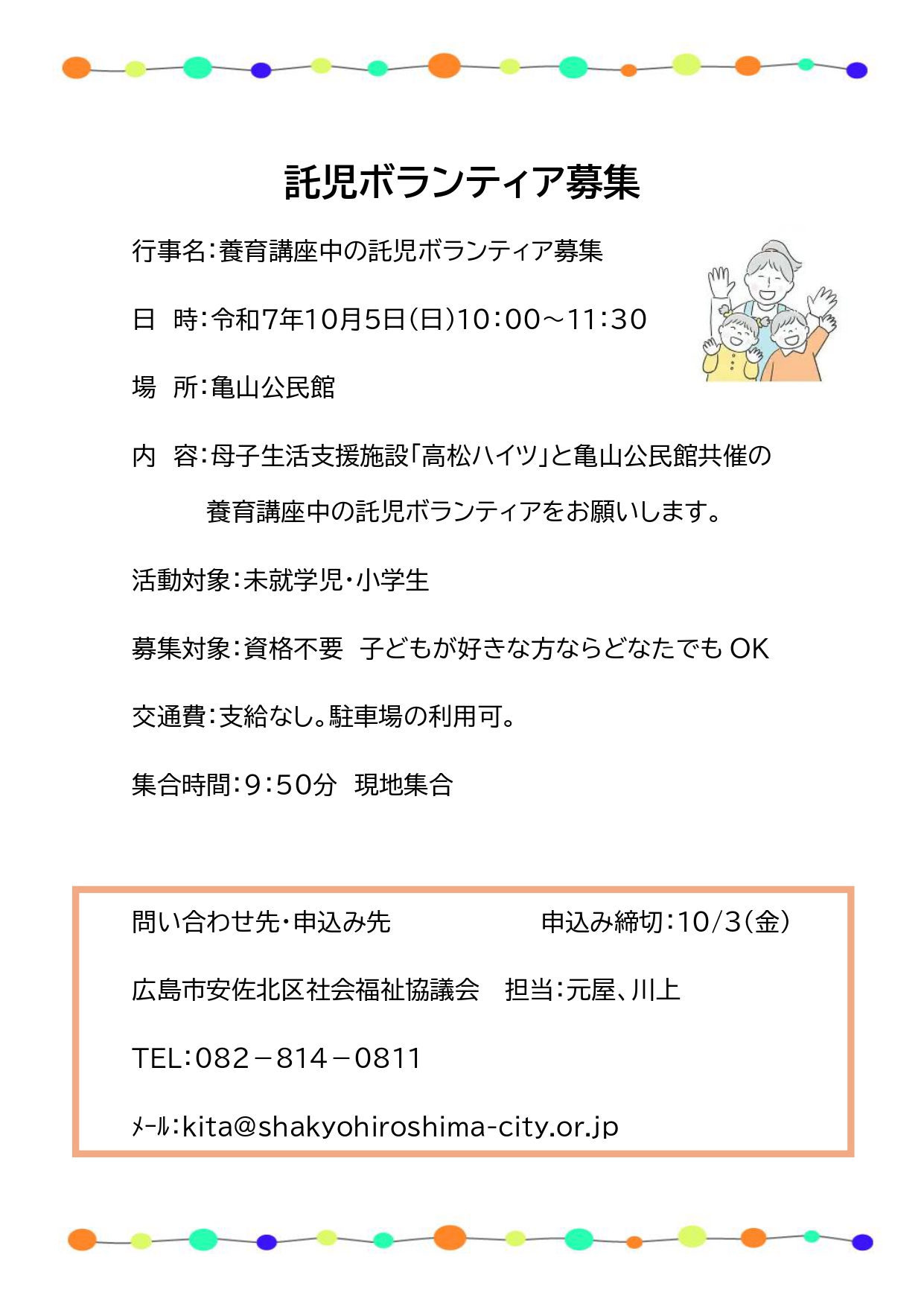 安佐北区社会福祉協議会 ボランティア担当まで。