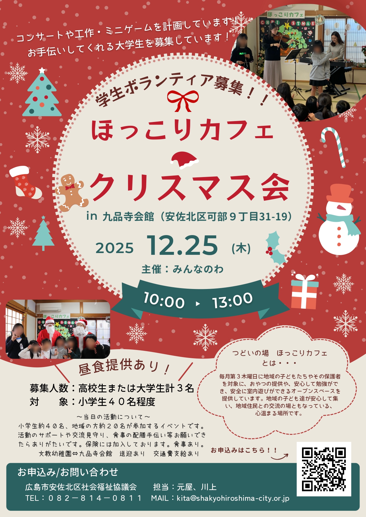 【ほっこりカフェ クリスマス会 学生ボランティア募集】