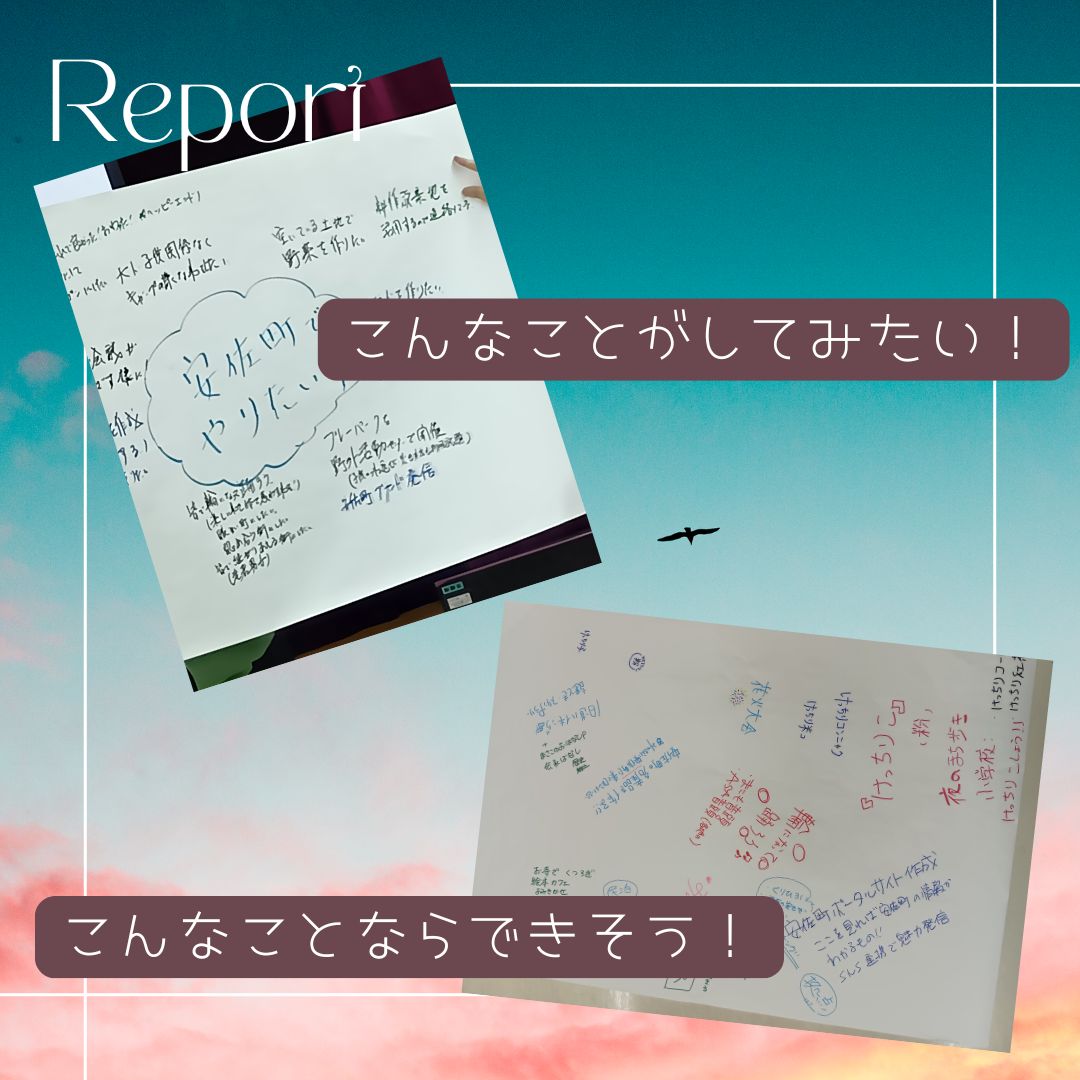 そしてやってみたいこと。やれそうなこと。伝承話の結句「けっちりこ」を安佐町ブランドの合言葉にすること。人を呼び込むポータルサイトと拠点づくりをすること、など様々な想いやアイデアを共有しました。