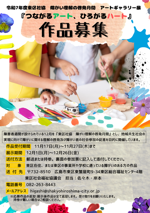 『東区 障がい理解の啓発月間』展示作品募集!!