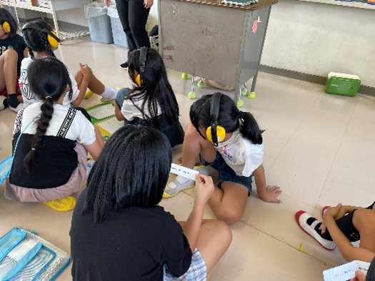 まず訪問看護ステーションmiraiさんに高齢者は何歳から?、年を重ねると五感はどう変化するのか?について教えていただいた後、実際に聞こえにくさや、歩きづらさを疑似体験しました。