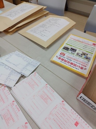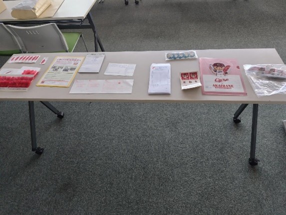 区共同募金委員会からは、今年度の募金運動へのご協力のお願いをし、資材をお渡ししました。