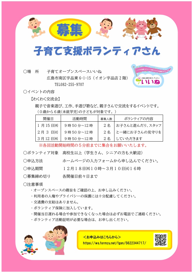 - 子育てオープンスペースいいね(南区宇品東6-1-15 イオン宇品店2階)